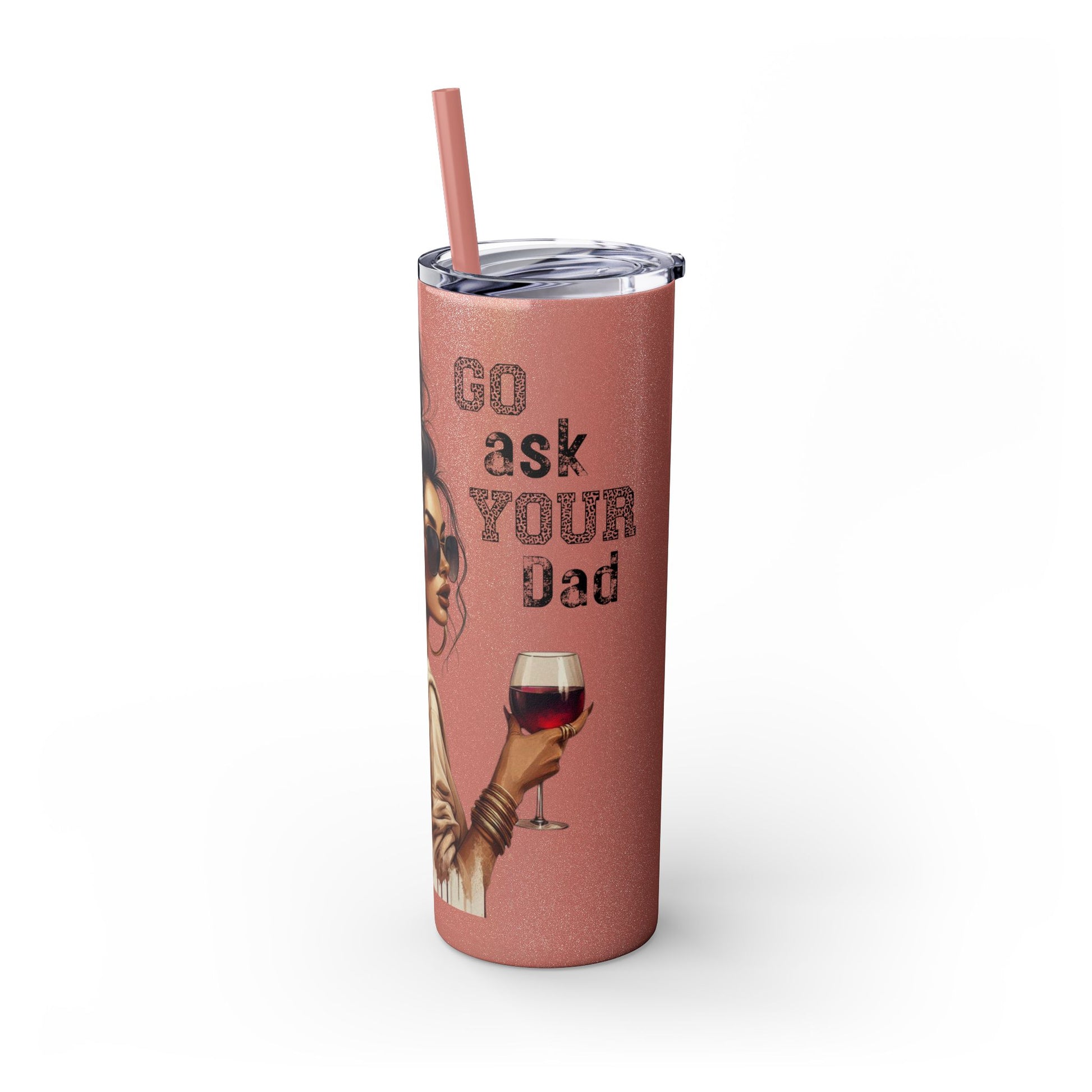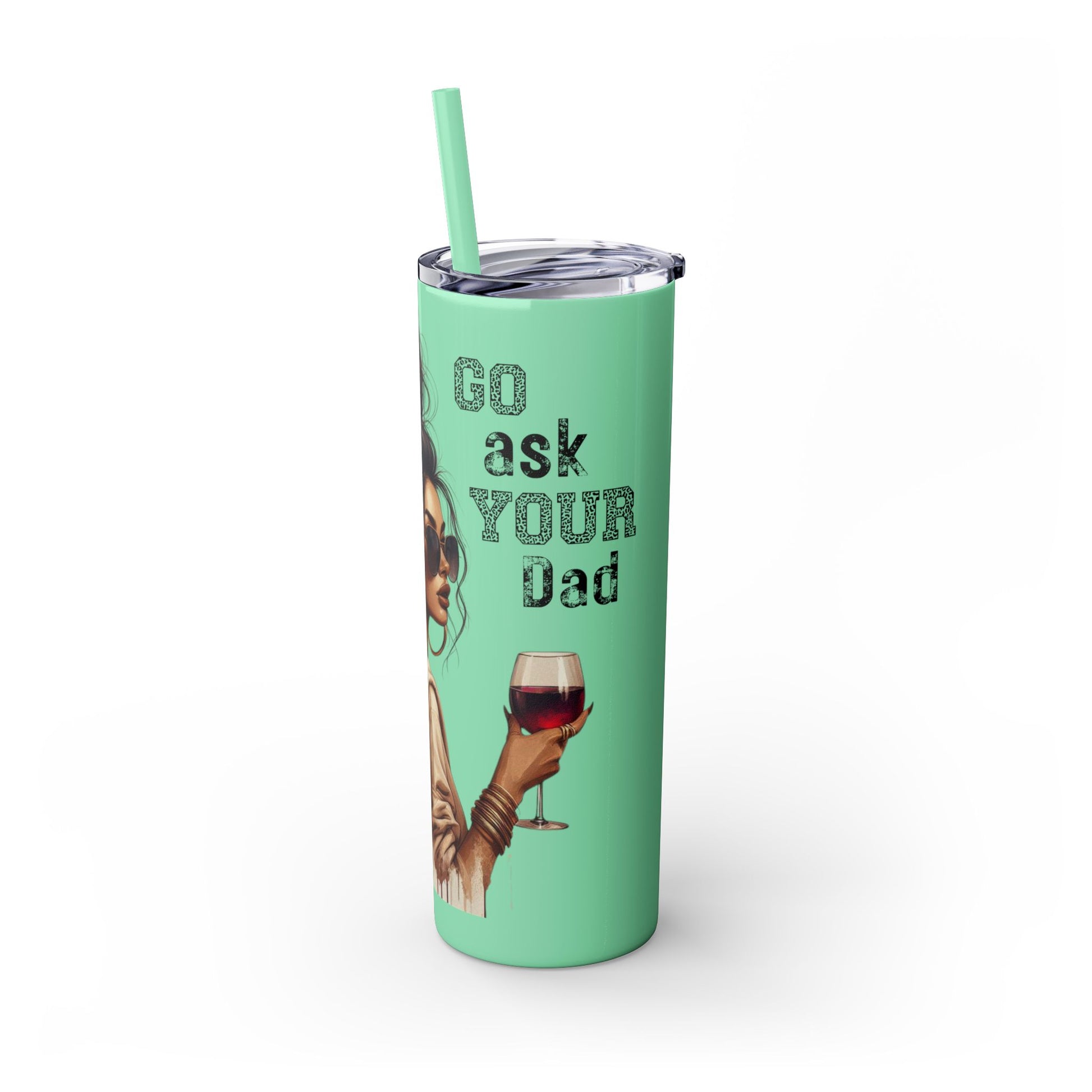GO ASK YOUR DAD Stylish 20oz Skinny Tumbler with Straw - Go For It Design