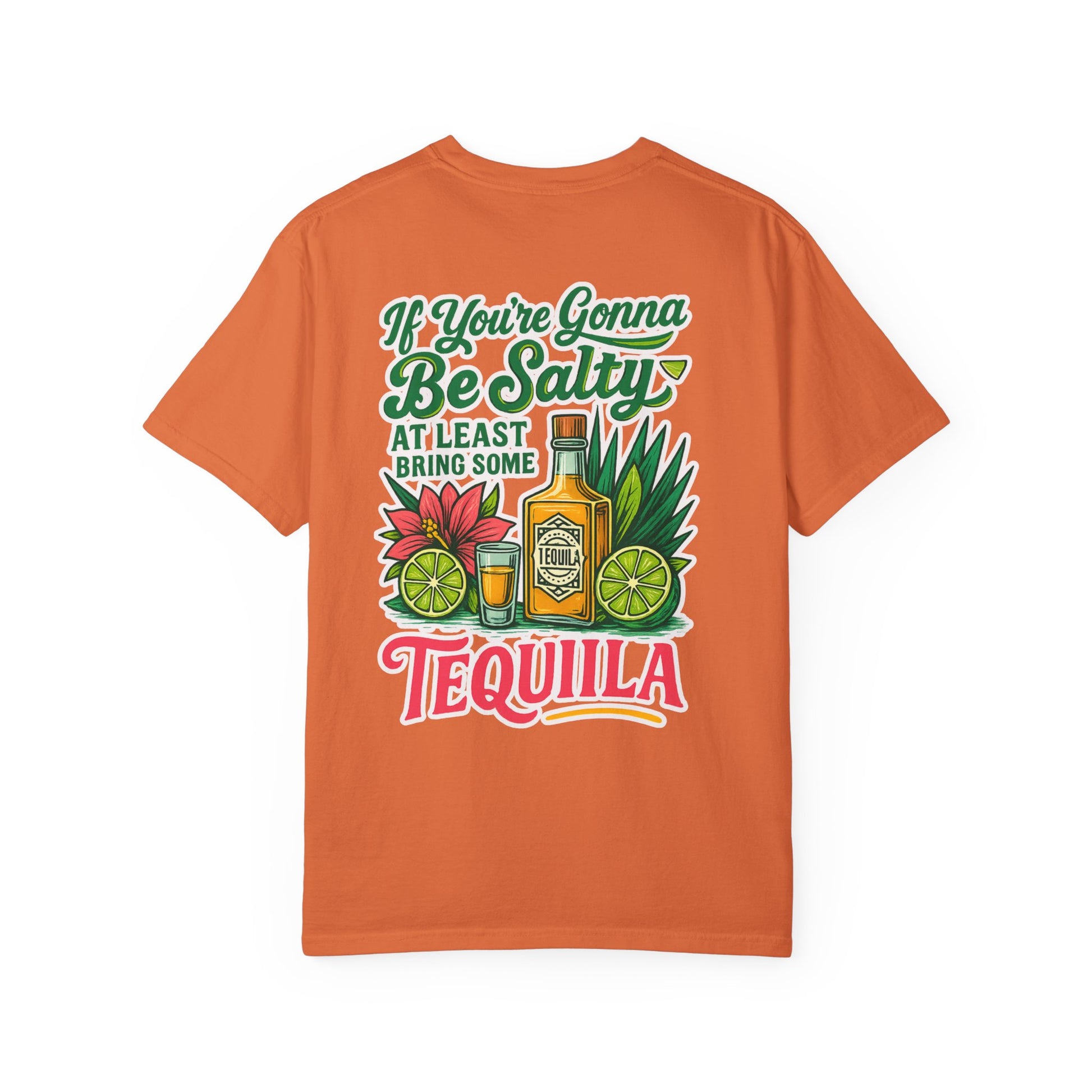 This T-Shirt is perfect for those who love a little bit of sass with their outfits. The design 'If you are going to be salty, at least bring the tequila, lime' adds a fun and playful vibe to any look. It's great for casual wear or as a statement piece at a party or gathering. This T-Shirt is relevant for adults who enjoy humor and want to express their playful side. Perfect for parties, holidays, or everyday wear.