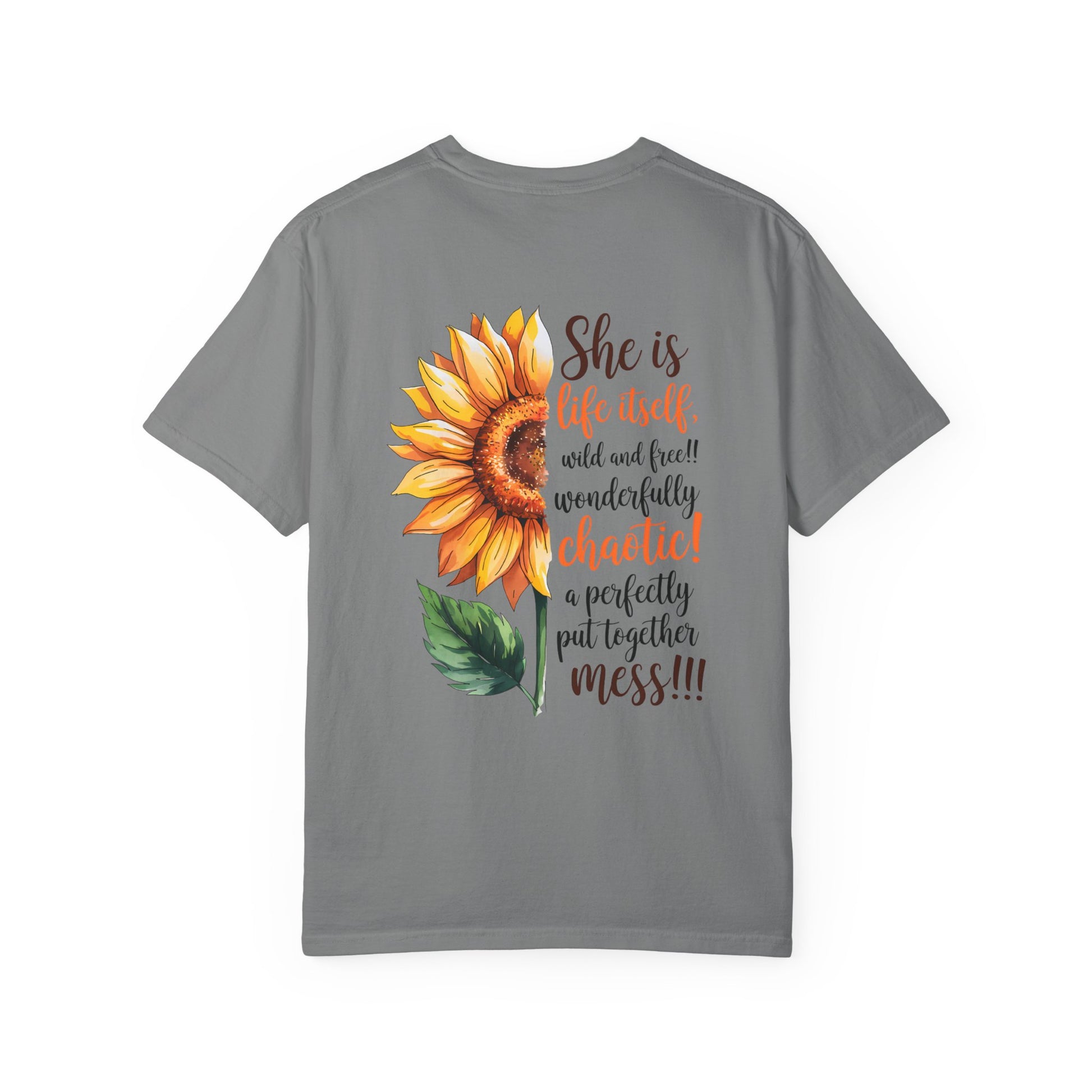 This unisex garment-dyed t-shirt radiates a warm and vibrant vibe, perfect for those who embrace life with a sense of freedom and joy. The beautiful sunflower design on the front and the uplifting quote on the back make it a fantastic addition to casual outings, bringing a splash of color and positivity to everyday wear. Ideal for nature lovers, creative souls, and anyone who appreciates a relaxed, stylish look. This t-shirt is perfect for spring gatherings, festivals, or just lounging around with friends. Celebrate life’s little moments with a comfortable tee that expresses your unique personality!